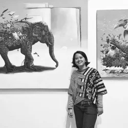 Camelia Mitasari Hasibuan was born on March 6, 1993, in Gunung Kidul, Yogyakarta. She studied Fine Arts at the Indonesian Institute of the Arts (ISI) Yogyakarta. Embracing surrealism as a core approach, her work draws inspiration from the natural world and often features flora, fauna, and cosmic elements merged into imaginative, unified forms. Oil paint is her primary medium.